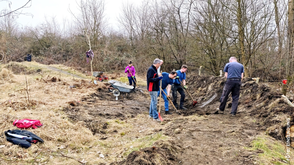 Ein erster größerer Arbeitseinsatz fand am ersten Märzwochenende statt. Vor Ort wurden die Aufgaben auf Grundlage der mit den Behörden abgestimmten Maßnahmen verteilt. Besonders bei der Ausarbeitung von Kurven war körperlicher Einsatz gefragt – an vielen Stellen wurde gleichzeitig mit Schaufeln, Spaten und Schubkarren gearbeitet.