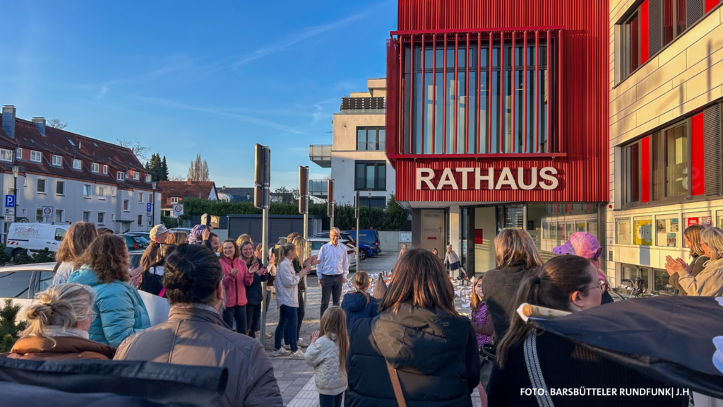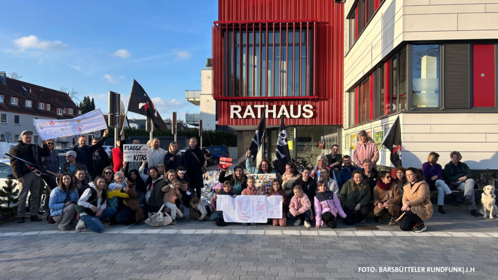 Mit einer eindrucksvollen und kreativen Aktion haben Eltern, Kinder, Erzieher und Unterstützer am Freitagnachmittag vor dem Rathaus in Barsbüttel gegen die mögliche Schließung der Kita „Piratenschiff“ im Ortsteil Willinghusen protestiert.