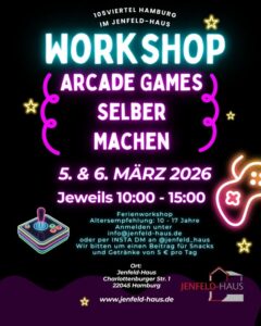 Bereits am 5. und 6. März findet jeweils von 10 bis 15 Uhr ein zweitägiger Ferienworkshop für Kinder und Jugendliche im Alter von 10 bis 17 Jahren statt. Unter dem Motto „Eigene Arcade Games entwickeln“ lernen die Teilnehmenden spielerisch Grundlagen des Game Designs und der Programmierung.